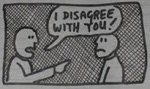 She was tough, and she wasn’t listening. She was offended that Christians thought they had the only answer and stubbornly rejected my best efforts to persuade her.disagreeing cartoon